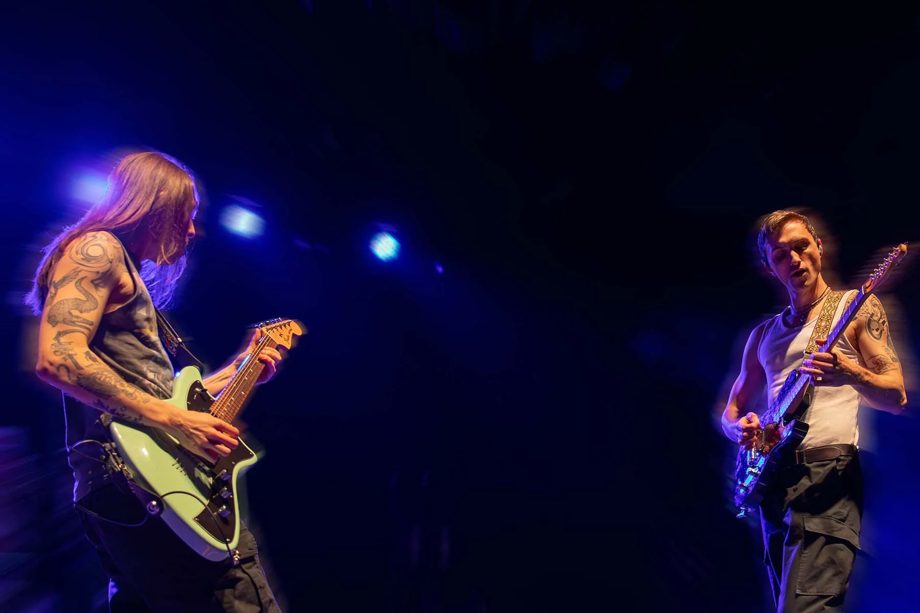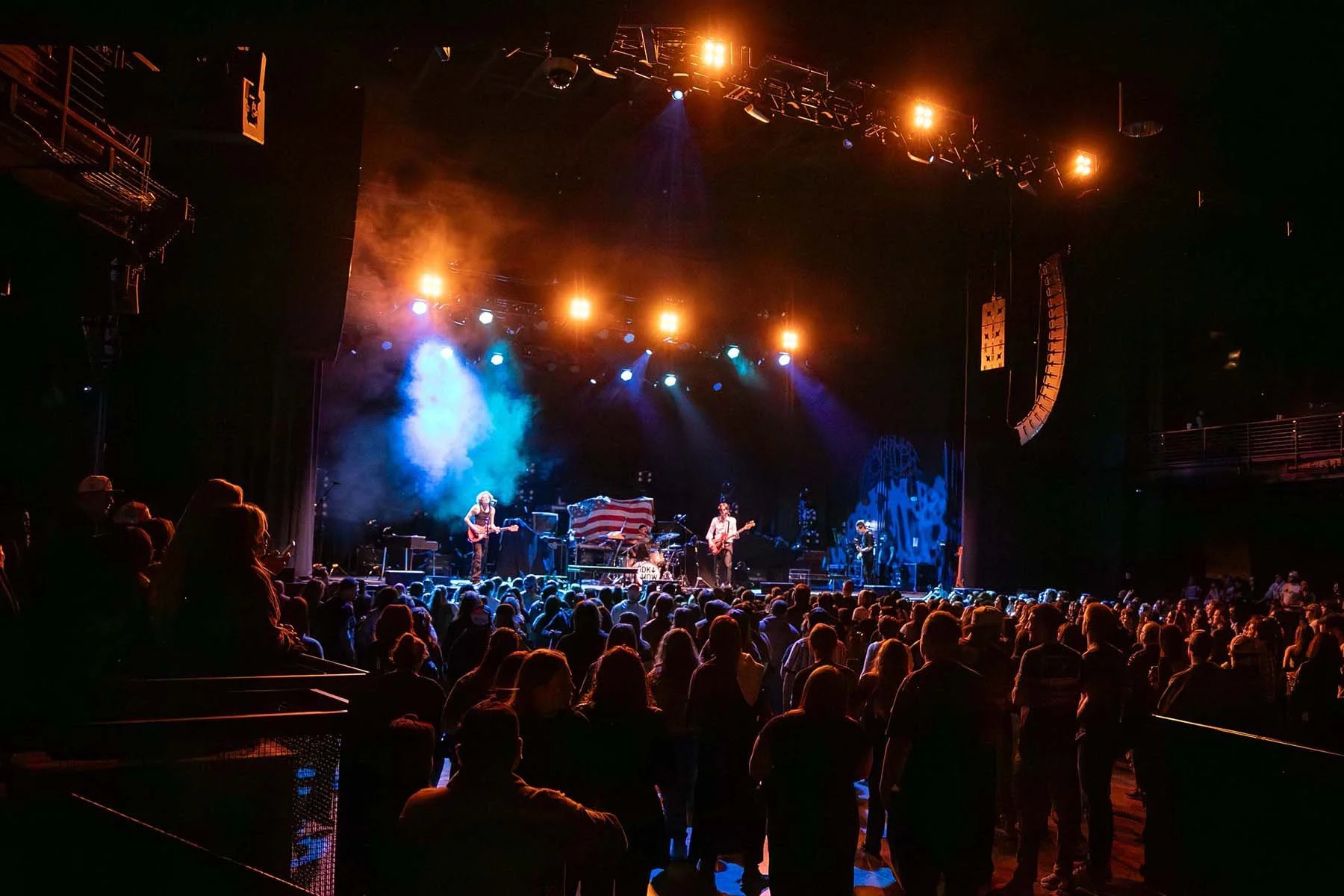Milwaukee got its first official Live Nation owned venue earlier this year, and its name is Landmark Credit Union Live. It’s located conveniently and maybe not so conveniently during busy months, right between Fiserv Forum and Turner Hall in Downtown Milwaukee. This was my first time stepping inside of it and getting to adventure into new venues as a concert photographer is always exciting. There were some bumps as far as obtaining my photo pass and getting through security, but it’s still very new, so I imagined there would be some hiccups from the get-go. Once inside and able to take it all in, it is very reminiscent, if not identical, to The Sylvee in Madison. There is a general pit standing area just a couple of steps down from the main floor, which is surrounded by bars on all sides. The lower step down is a great separation of those who want to maybe mosh and those who just want the center view without the anticipation of what comes with pit etiquette. I’m honestly here for it because sometimes I want the great view without the shoving. Then there is balcony seating. I was not granted any permission up there, so maybe another time. Overall, it’s a pretty cool place, very modern in comparison to some of the older venues in the area.