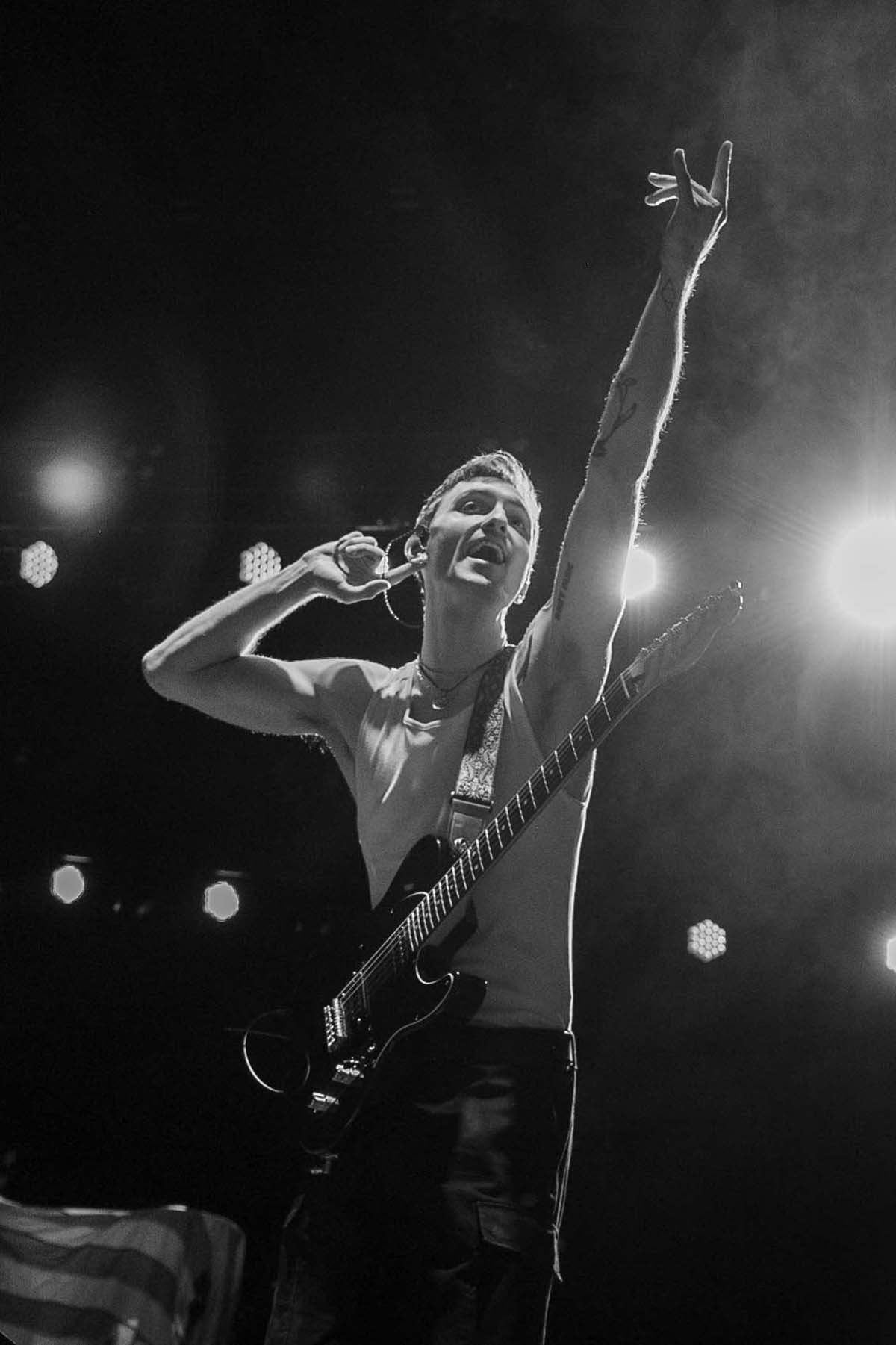 After that, I Don’t Know How, But They Found Me, aka IDKHow, was ready to play. I had never seen this band live and wasn’t super familiar with their music. The name was definitely prominent, as several friends had told me they were big fans of this group, so my expectations were high. They did not disappoint in the energy, and their frontman, Dallon Weekes, also knew how to work some magic on the audience. He danced all over that stage, shaking his hips and holding the mic stand over the crowd, encouraging them to scream the lyrics as loud as possible.