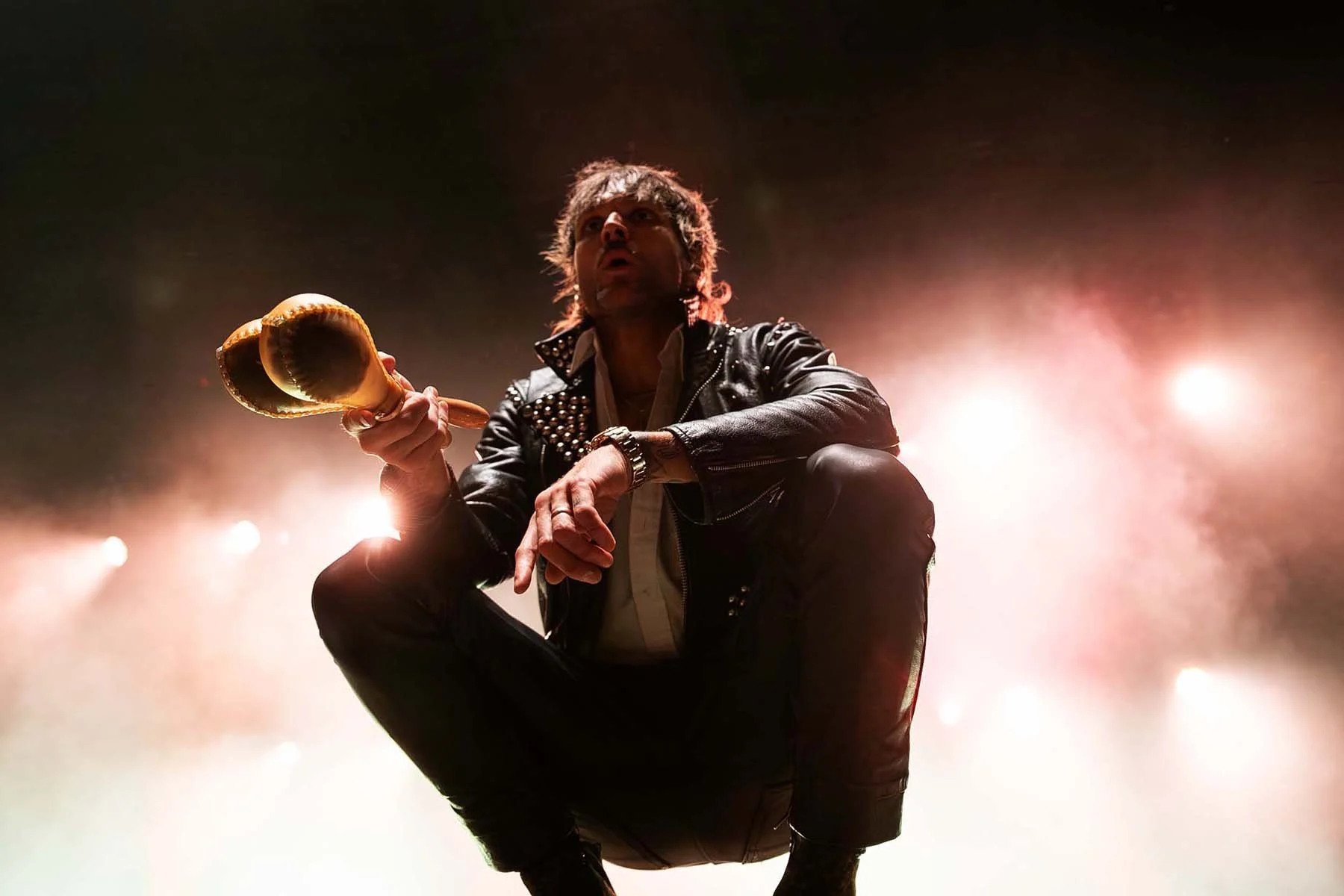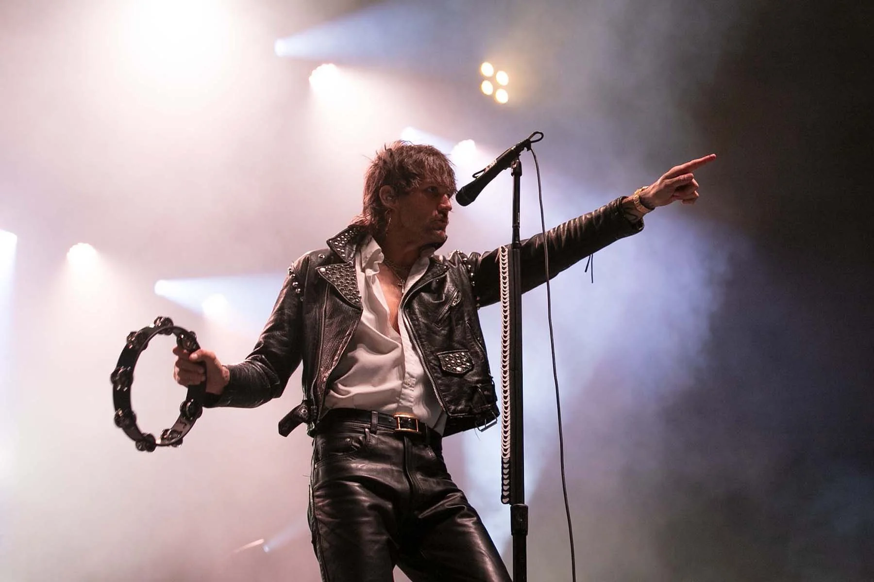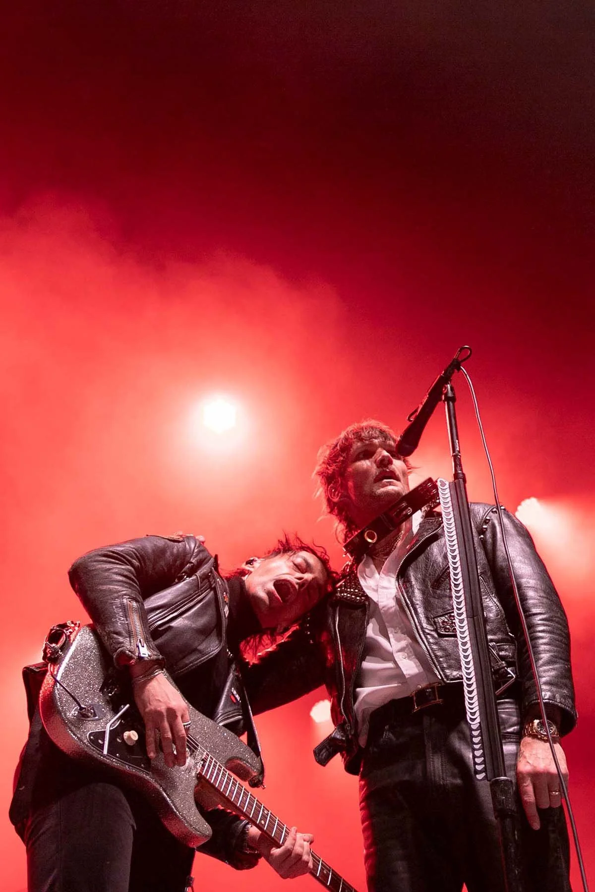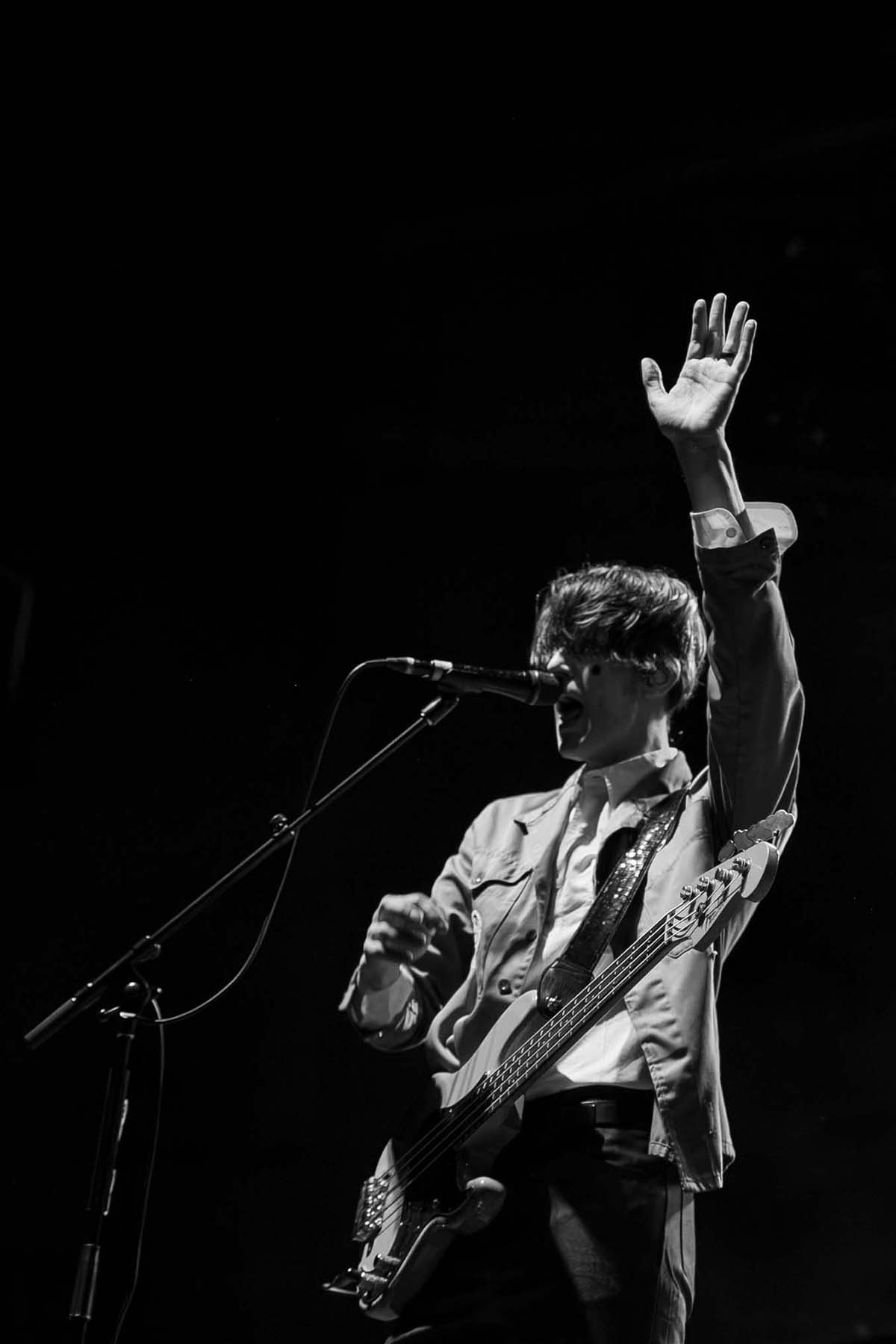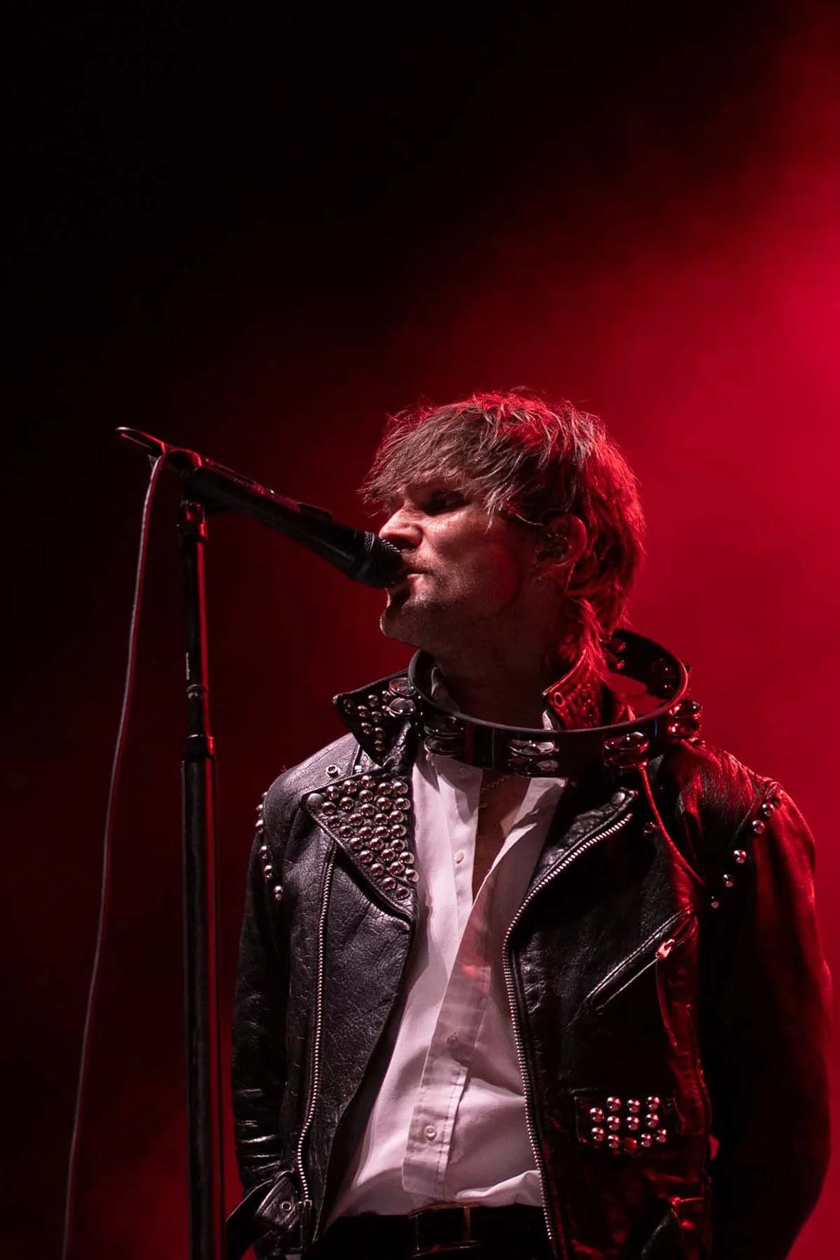 Finally, as per usual, the entire room was darkened for the arrival of the headliner of the night. There were televisions set up all over the stage, and they flashed different scenes before the band slowly took the stage. This band is full of divas because they do so much. Drummer John Keefe and Guitarist Jamel Hawke almost always enter on stage with a lit cigarette before putting it out. Bassist Gregory James, sporting a red bandana wrapped around his head, came out to even more cheers. Then, finally, the man, Martin Johnson, as the band kicked in the first track of the album, Love Drunk, with “Heart Heartbreak.” The entire room was jumping at the start, screaming and singing along. Johnson danced around the stage and had a tambourine in hand.