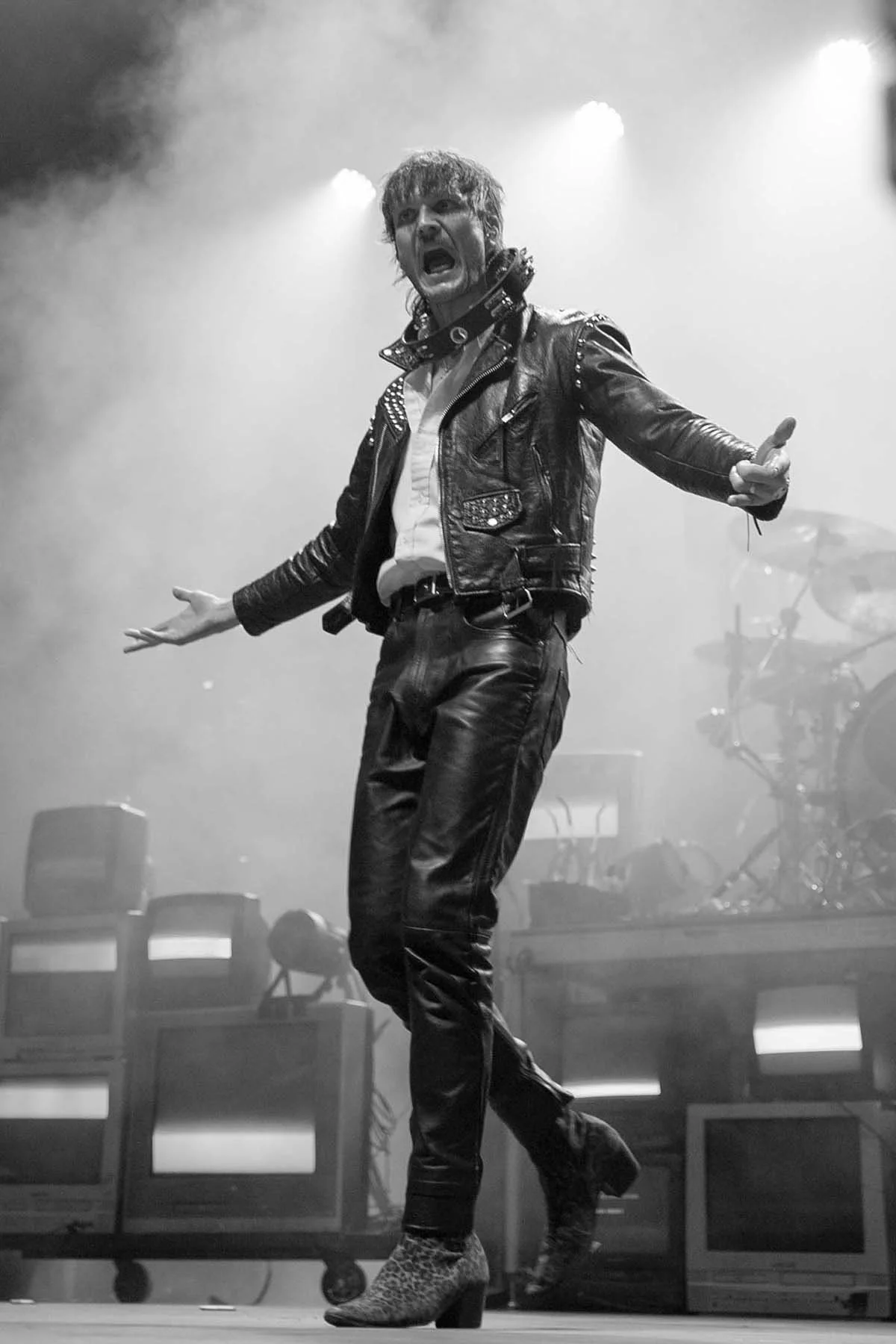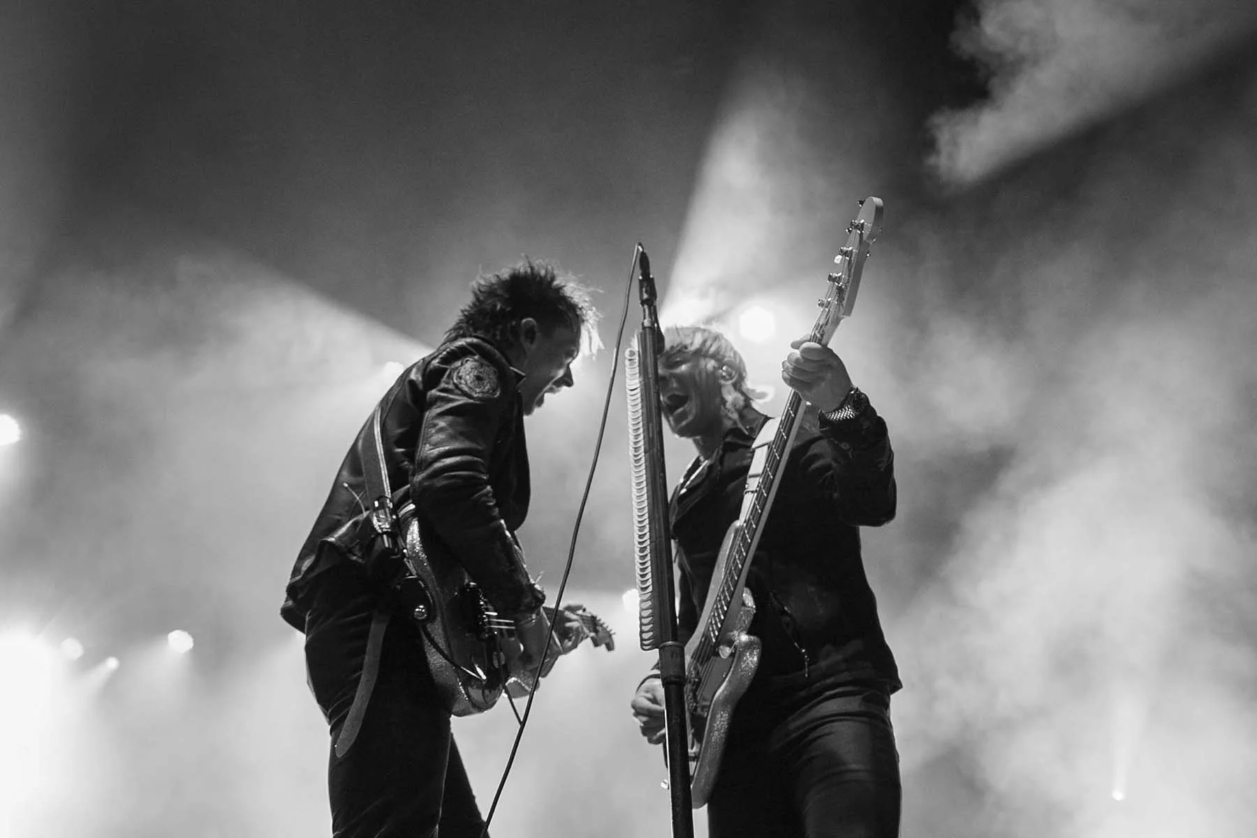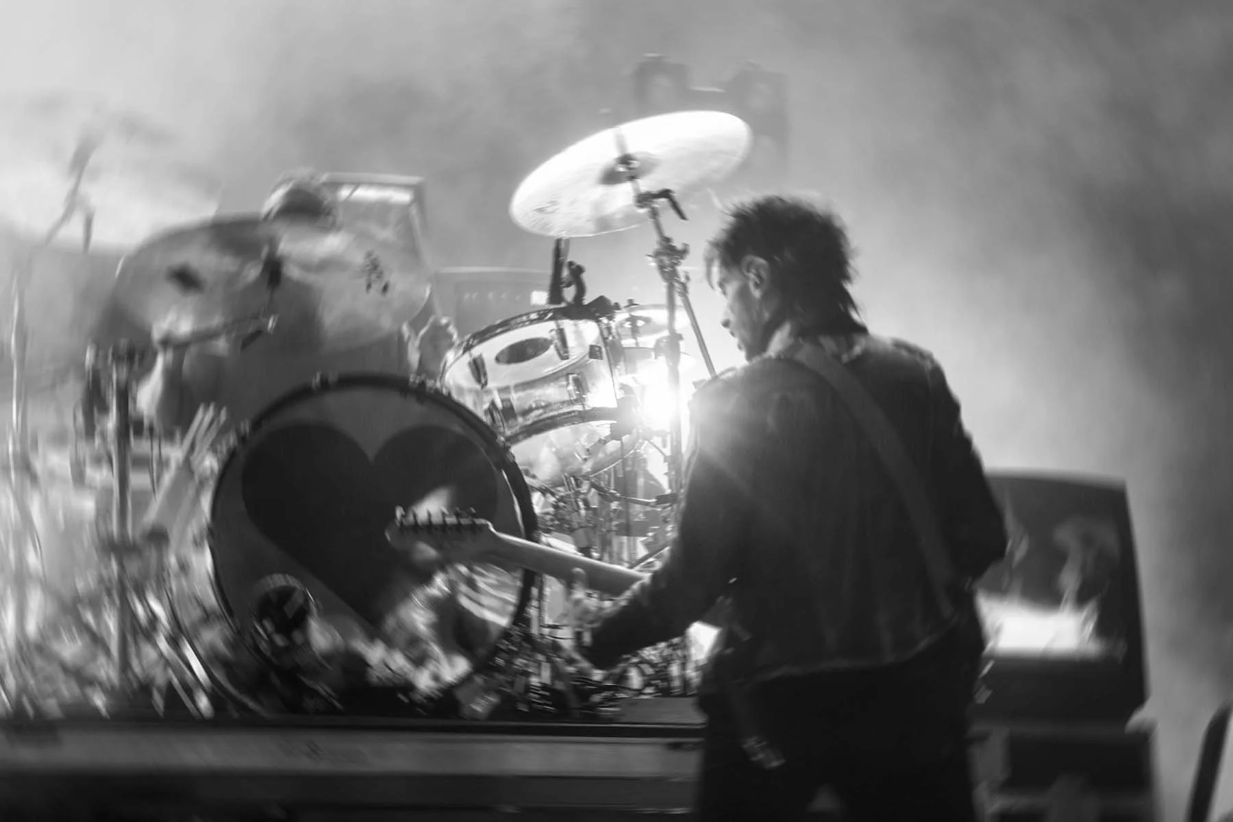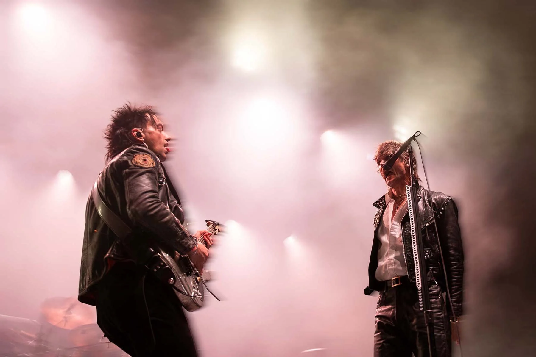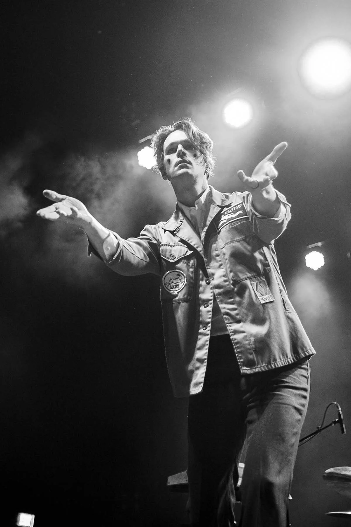 Finally, as per usual, the entire room was darkened for the arrival of the headliner of the night. There were televisions set up all over the stage, and they flashed different scenes before the band slowly took the stage. This band is full of divas because they do so much. Drummer John Keefe and Guitarist Jamel Hawke almost always enter on stage with a lit cigarette before putting it out. Bassist Gregory James, sporting a red bandana wrapped around his head, came out to even more cheers. Then, finally, the man, Martin Johnson, as the band kicked in the first track of the album, Love Drunk, with “Heart Heartbreak.” The entire room was jumping at the start, screaming and singing along. Johnson danced around the stage and had a tambourine in hand.