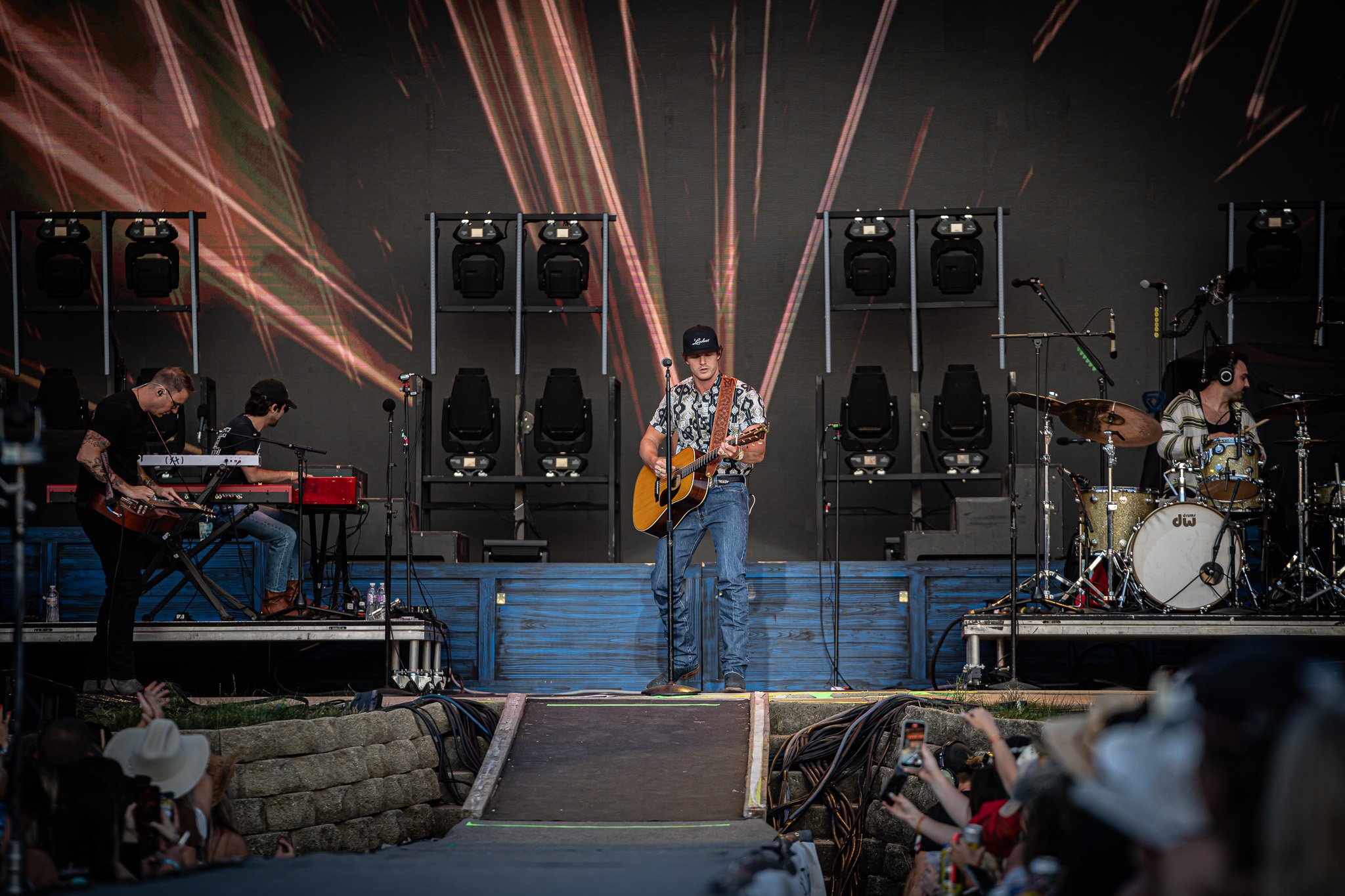Bailey Zimmerman hit the stage with electric energy and had the crowd on their feet from the very first song. His distinctive country sound combined with catchy melodies had fans swaying and singing along to every word. It was evident that he was meant to be on that stage, performing for an audience that adored him. Bailey showcased his incredible vocals throughout his set, his unique and soulful tone drew in every single person present. Each song told a story, evoking raw emotions and leaving a lasting impact on those who listened. Bailey’s interactions with the crowd were another highlight, engaging with the audience and creating a sense of unity between the performer and fans. It was truly magical to watch everyone come together and connect through Bailey's music. He even jumped off the catwalk at one point to join the massive crowd on the lawn. Just a year prior, Bailey played the same festival early in the day and drew close to 40,000 people onto the ranch. Morgan Wallen watched the show side stage and due to what he saw, it was clear to see why he was invited to join Morgan’s tour. With his talent, passion, and love for his fans, Bailey Zimmerman is set to become a star in the world of country music.