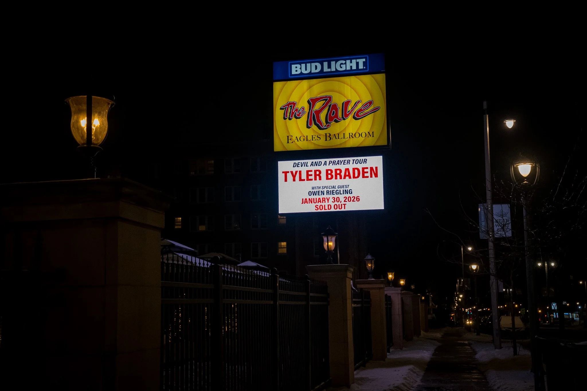The Rave Eagles Club in Milwaukee was alive with excitement as fans packed into the historic venue for the highly anticipated opening night of Tyler Braden's "Devil and a Prayer" tour. The Rave II, known for its underground, Miami-style ambiance, provided an intimate yet energetic backdrop, creating a space where every note felt amplified and every lyric deeply resonated. With the winter chill outside, the warmth of shared anticipation inside the packed venue was undeniable, as concertgoers buzzed with the kind of energy that only live music can ignite. This wasn’t Tyler’s first time performing at the Rave but tonight marked a significant milestone. A sold-out opening night headline show.