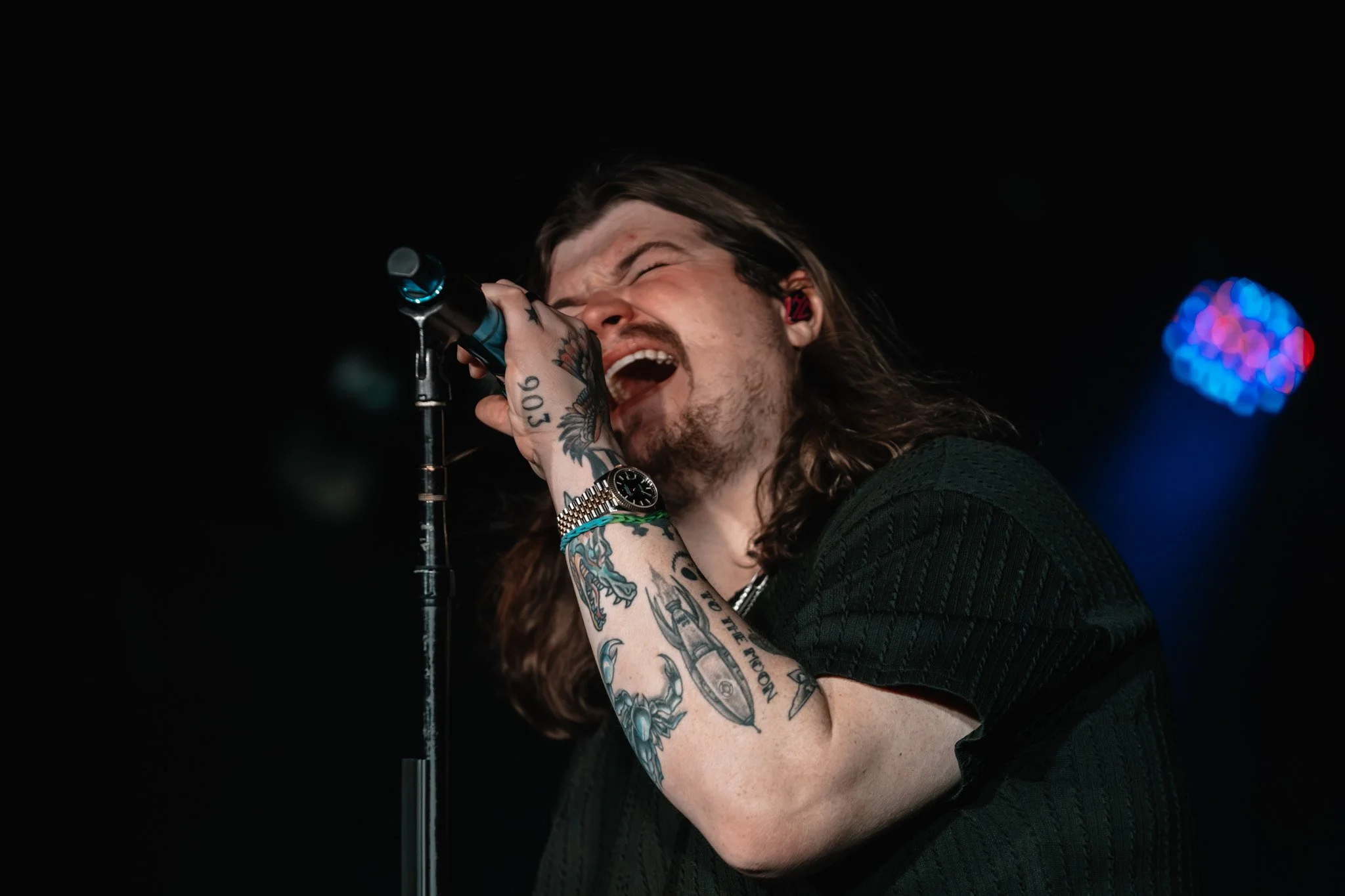 The room buzzed with anticipation as the lights dimmed and smoke filled the air, signaling the start of Kolby Cooper’s first-ever performance in Milwaukee. With the opening notes of "Kill Me," Kolby wasted no time commanding the stage, his energy igniting an immediate response from the crowd. Fans raised their voices and fingers high during "Two Words," turning the intimate Rave Bar into a chorus of shared excitement.