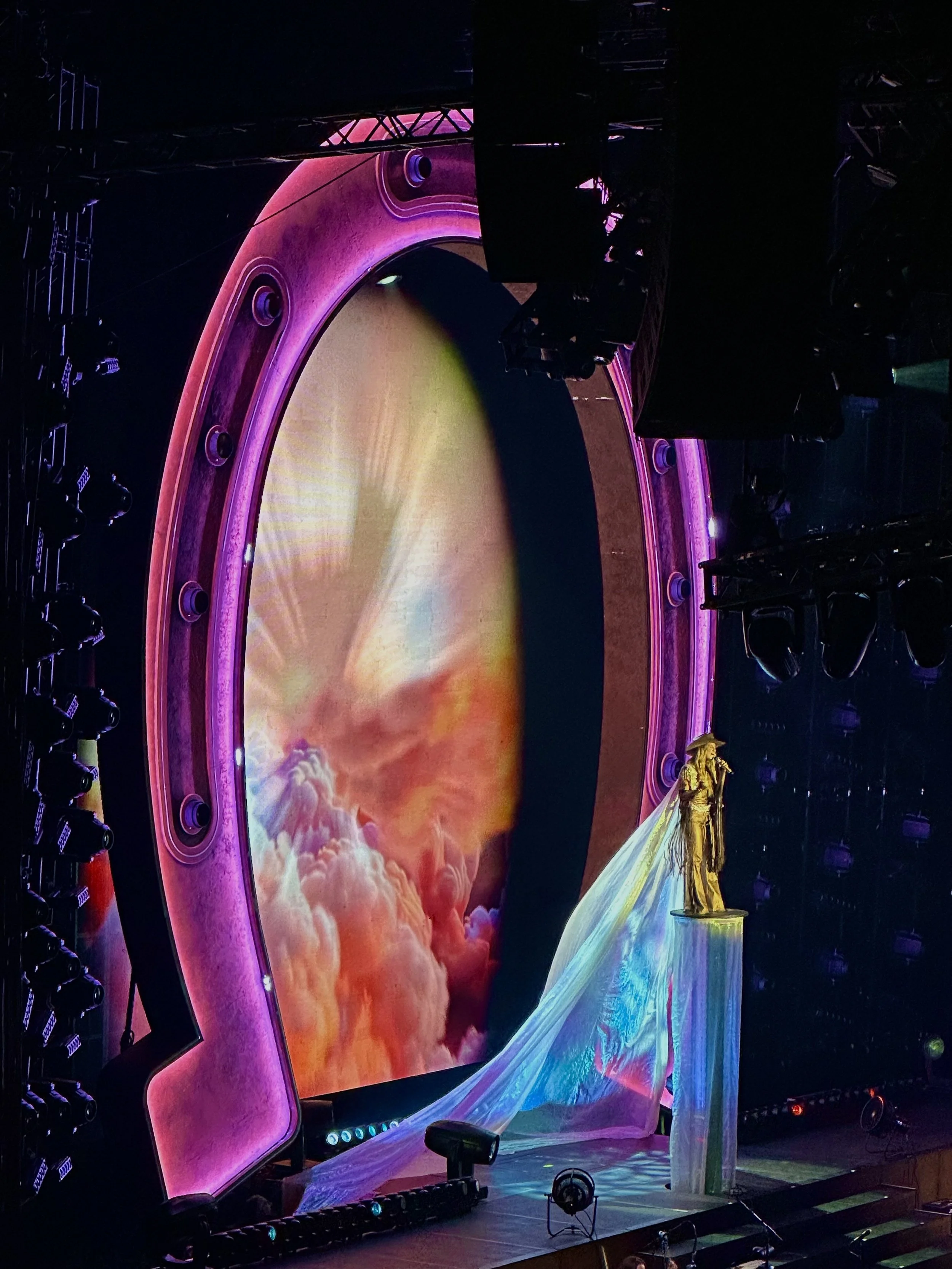 Lainey Wilson hit the stage in a stunning brown leather outfit, complete with her signature cowboy hat and fringe, and opened with a fierce performance of “Whirlwind” followed by “Hold My Halo.” Her spins, high kicks, and all set the tone for the rest of the night. Maddox Batson returned to join her for “Good Horses,” originally recorded with Miranda Lambert. Lainey’s stage production has definitely leveled up since last year. The stage had giant horseshoe screens, elevated platforms, and ceiling light fixtures which gave the show an immersive, cinematic vibe. At one point, she was lifted into the air on a platform during “Somewhere Over Laredo,” with a cape flying dramatically behind her. It was nothing short of epic.
