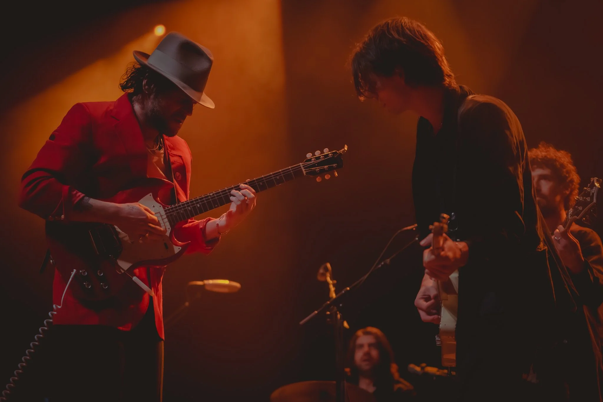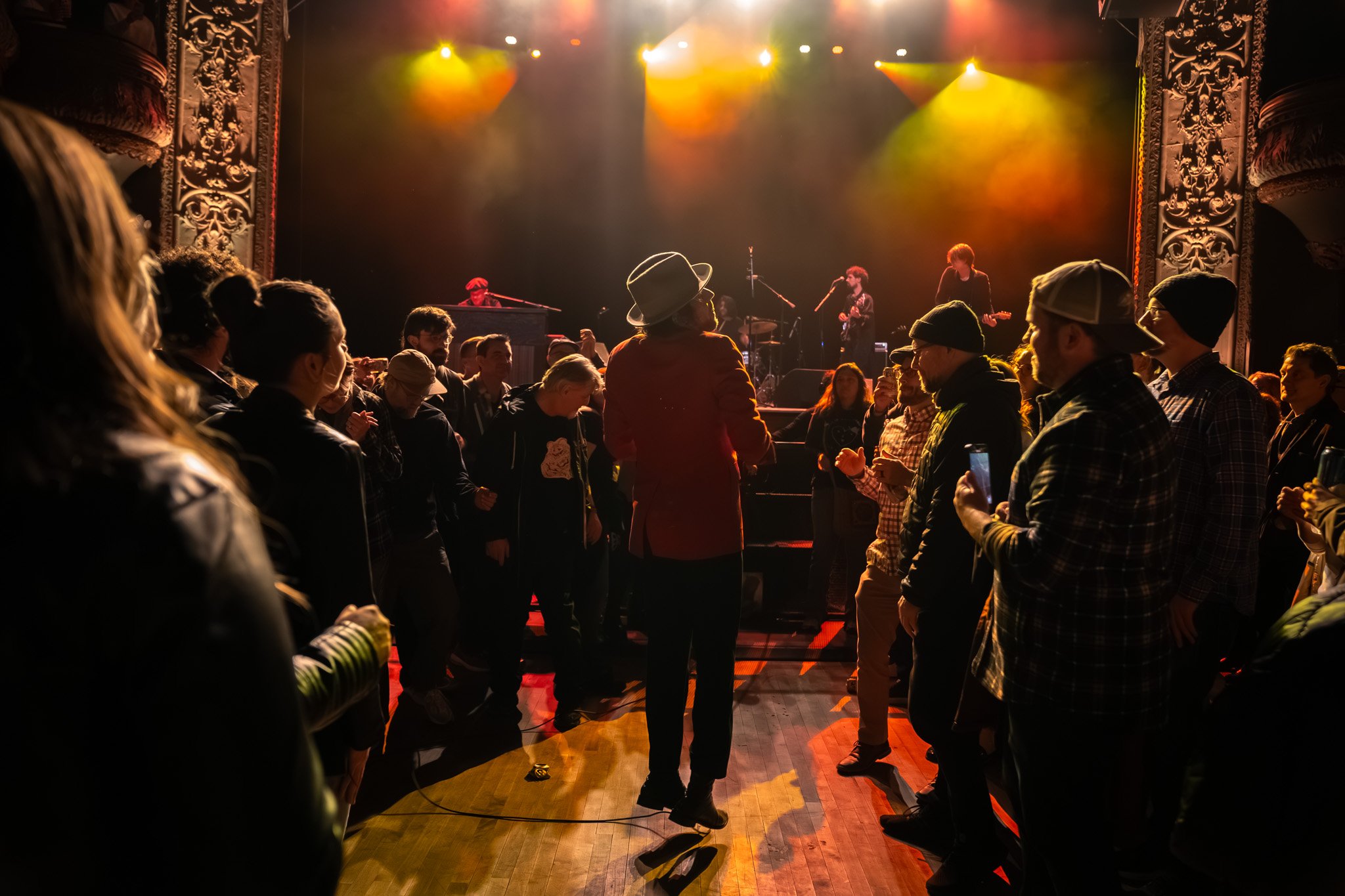 As the night unfolded, Langhorne Slim took a moment to strip back the energy, stepping onto a small box in front of the stage with just his guitar in hand. This quiet interlude felt like an intimate conversation, as if he were sharing secrets with each person in the room. His voice, raw and unguarded, carried the weight of his lyrics in a way that demanded attention. He introduced "What The Fuck Is Going On" with a mix of humor and sincerity, drawing a wave of knowing laughter from the crowd before diving into the song’s poignant truths. Next, he offered "Song For Silver," a tender tribute to his son that brimmed with love and reflection. The room hung on his every word, the audience so still you could hear the creak of the wooden floors beneath them. These moments, devoid of frills, showcased Langhorne’s unmatched ability to hold a room in the palm of his hand.