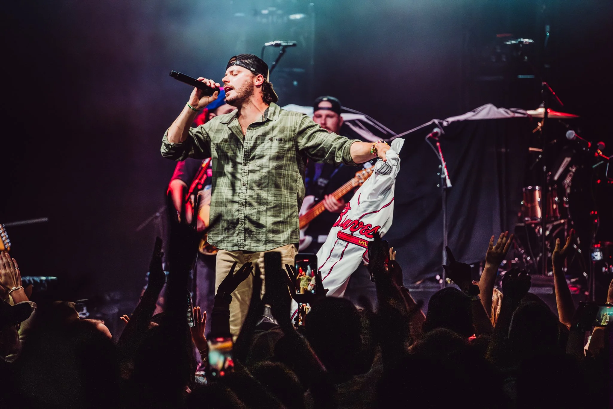 Then Nate Smith took the stage—there was no slow build; he just came out swinging. The crowd was all in from the first song, and he fed off that energy the entire time. His voice live is no joke—it’s got this rough, powerful tone that feels even bigger in person than it does on recordings. Just four songs in, Nate told the crowd that he loves being on the floor with them, asking if it was okay if he came off stage to hang out for “Whiskey on You.” What made the interaction extra special was that he didn’t just stay close to the stage—he walked the entire venue, all the way to the back, singing with his fans and taking photos with them along the way. That kind of personal interaction is something that’s been lost among so many artists; as if I wasn’t already a huge fan of his, that made me respect him even more.