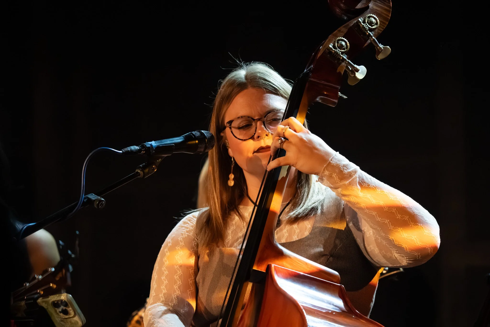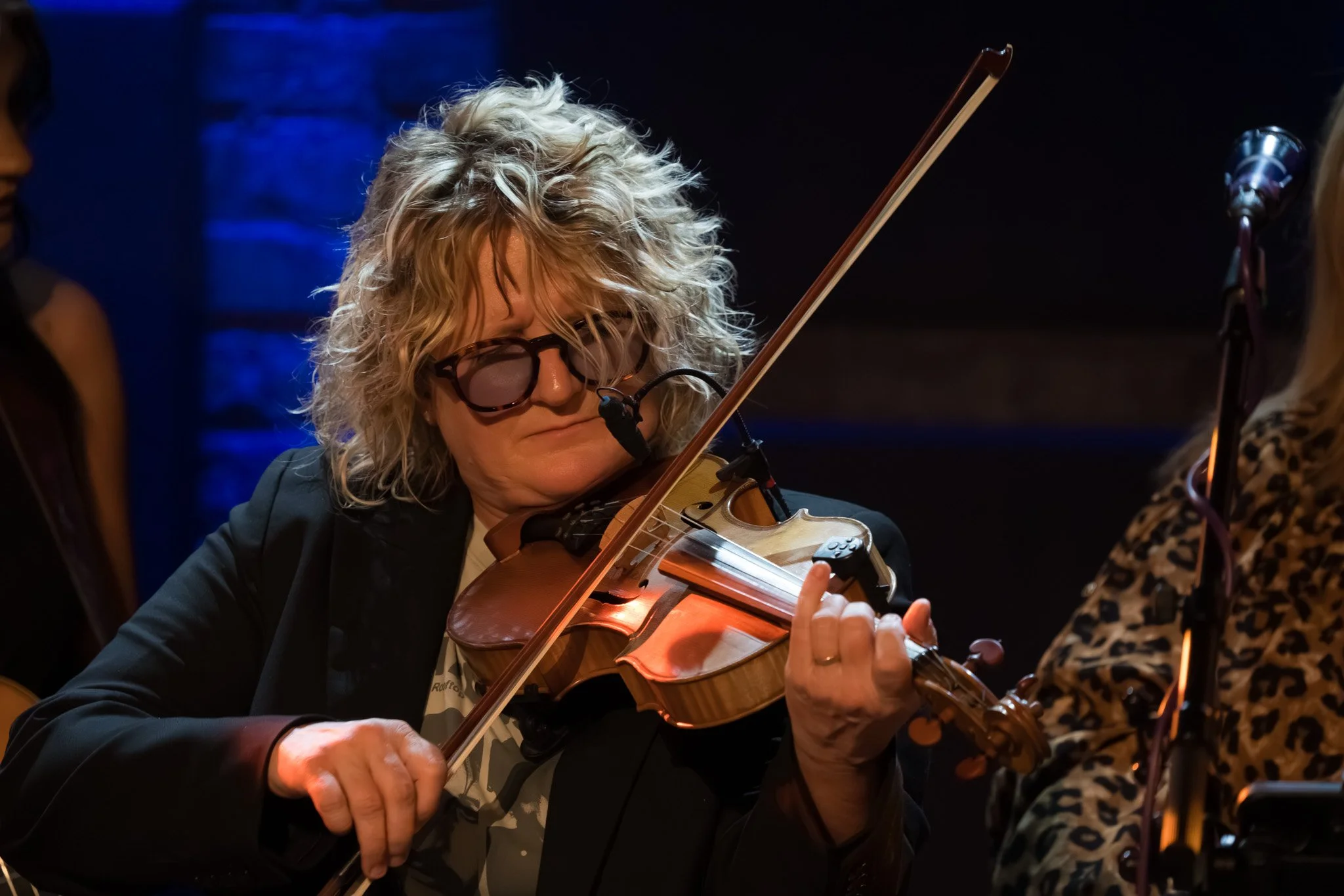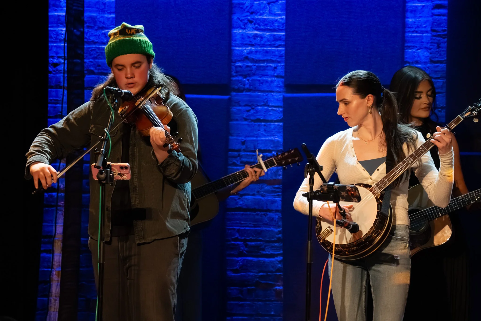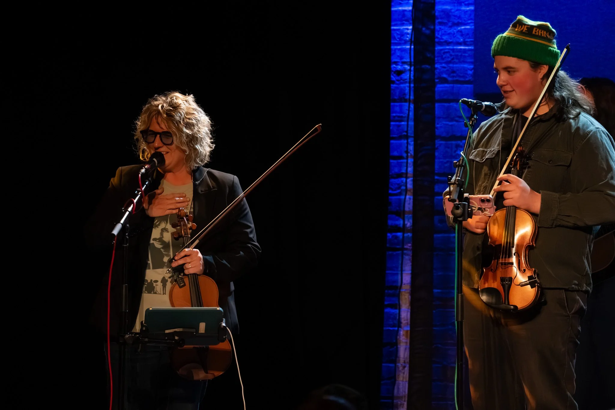 Deanie Richardson shared a heartfelt moment with the crowd, introducing one of her fiddle students, Finn McGuinness, who had just been accepted into the prestigious Berklee College of Music. The pride in her voice was palpable as she welcomed Finn to the stage, but the surprises didn’t stop there. Joining him was Luciya Sullivan, a soon-to-be freshman at Berklee College of Music and a member of the Chicago bluegrass band the Sullivan Sisters. Together, the two young musicians brought an extra layer of energy and spontaneity to the night, joining Sister Sadie for an impromptu jam session of the Bill Monroe classic, "Road to Columbus."